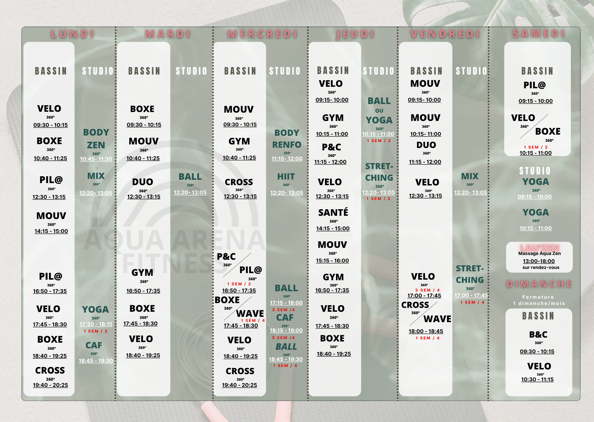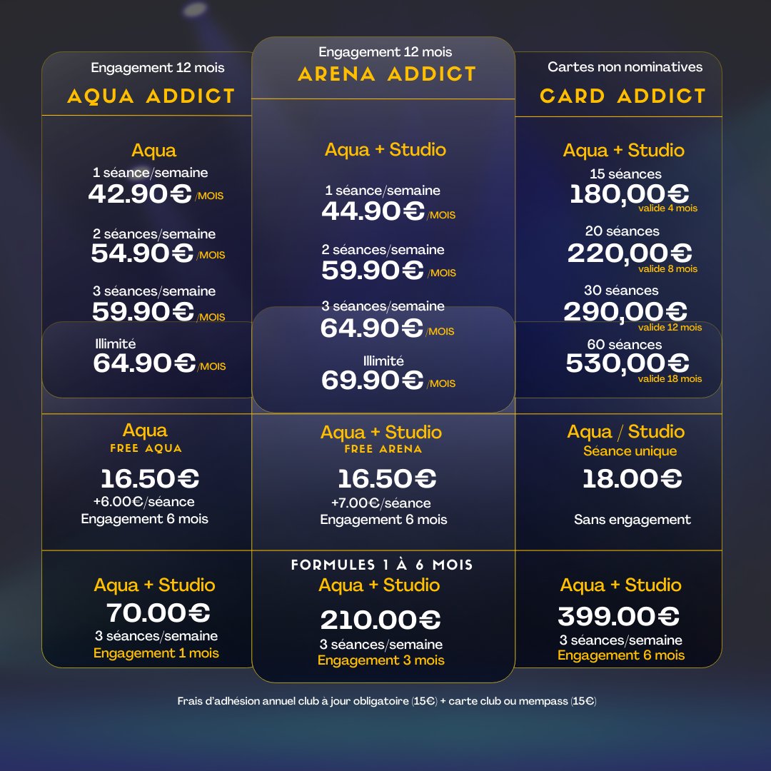 Planning et Tarifs des Activités à Aqua Arena, Mulhouse